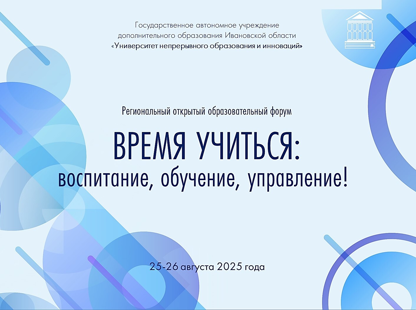25–26 августа в Ивановской области пройдет региональный образовательный форум «Время учиться: воспитание, обучение, управление!».